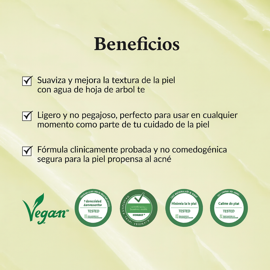 Totalmente vegana, sin fragancias, sin alcohol y sin parabenos, es una aliada segura incluso para las pieles más sensibles o reactivas.